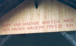Bei meiner Arbeit an diesem Schriftwerk aus Holz ist mir folgendes in den Sinn gekommen. Dieser Schriftzug muss seinen Ursprung in den dreissiger Jahren gehabt haben. Das „SS“ hatte genau diese Bedeutung und wurde vom damaligen Autor als Gefahr empfunden welcher man trutzen musste. Der Zimmerer konnte mir aber das Baujahr der Brücke nicht sagen, er wusste aber auch sonst nur, dass diese Brücke Ersatz war von einer zuvor Weggeschwemmten.