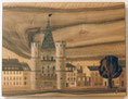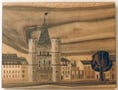 Intarsienbild mit dem Motiv Spalentor, Basel ca. 61 x 45 cm gross. Verwendetes Holz ist Nussbaum. Die Oberfläche ist farblos behandelt. Fr. 1440.--