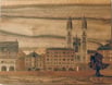 Intarsientafel mit dem Motiv Fraumünster, Zürich ca. 61 x 45 cm gross. Verwendetes Holz ist Nussbaum. Die Oberfläche ist farblos behandelt. Fr. 1500.--