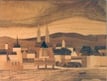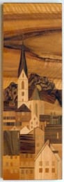 Intarsienbild mit Altstadtansicht von Baden ca. 72 x 24 cm gross. Verwendetes Holz ist Nussbaum. Die Oberfläche ist farblos behandelt. Fr. 1200.--